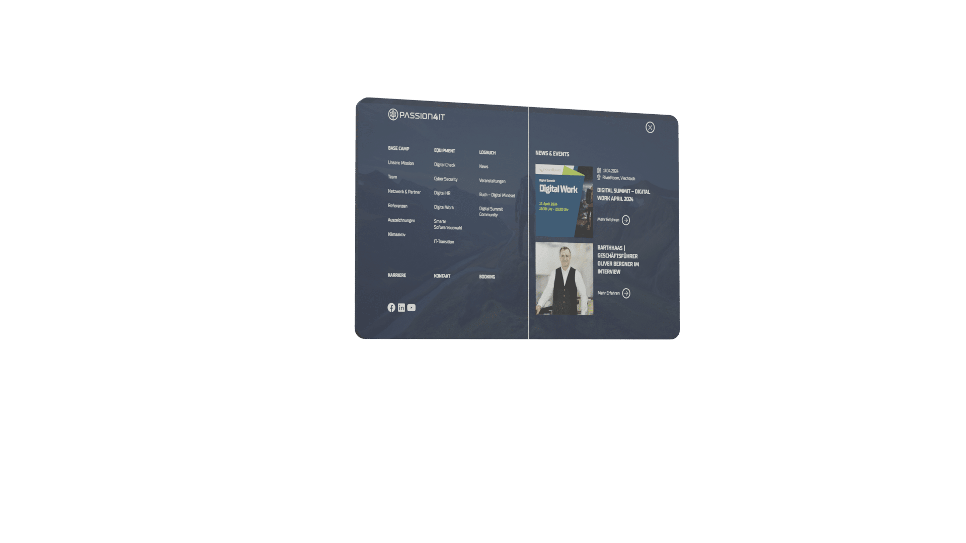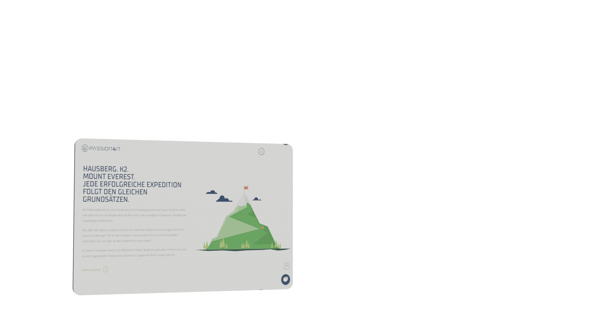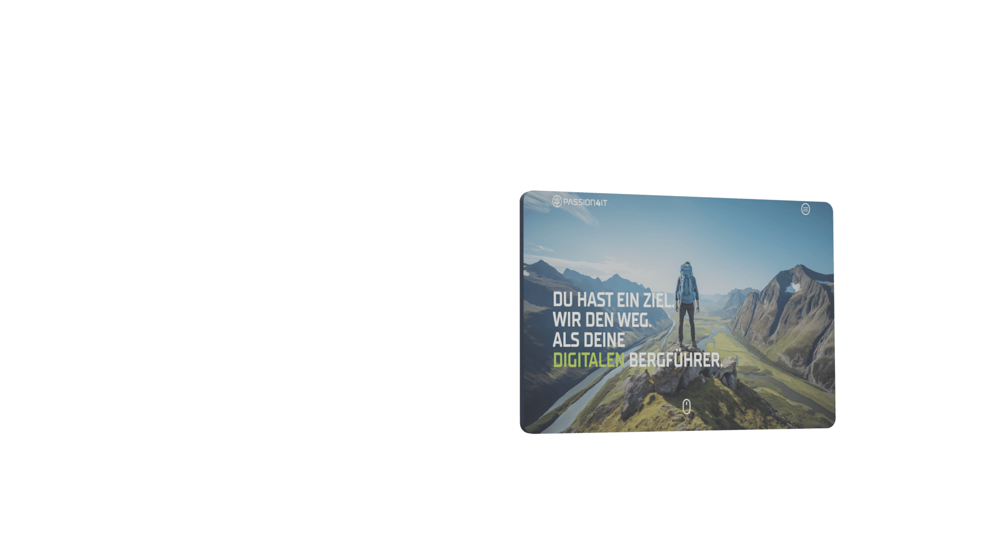 Mithilfe eines textlichen Manifests haben wir die vom Kunden gewünschte Leitidee „Bergwelten” als Analogie zu den täglichen Abläufen der Passion4IT gezeichnet. Auf Basis dessen wurde dann auch die Website konzipiert: Menüstruktur, Headlines und Texte beziehen sich auf der ersten Ebene immer auf die Kommunikationsstrategie “Die Sherpas der Digitalisierung”. Komplett wird die Idee durch KI-generierte Headerbilder sowie ein Iconset, die sich auf das Textkonzept beziehen und dieses verbildlichen. Zusammen ergibt das eine runde Kommunikationsstrategie, die den digitalen Bergführern als Leitfaden bei ihrem Aufstieg dient.